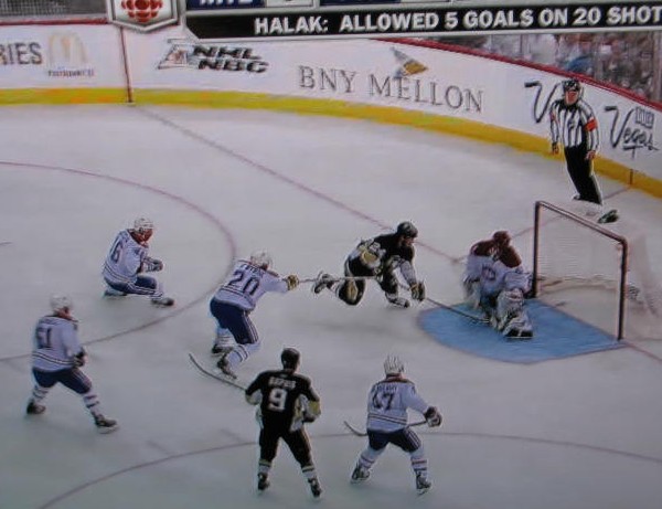 With Bergeron badly out of position, O’Byrne was forced to move into the middle of the ice to play the two-on-one. This opened a path to the goal for Cooke. Talbot made a nice pass to Cooke streaking towards the net. A quick move by Cooke that fooled Halak, and the puck was in the Montreal goal.