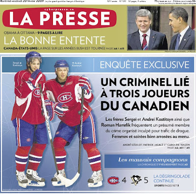 La Presse newspaper today published a dossier on embarrassing brothers Andrei and Sergei Kostitsyn who have links with a suspected member of organized crime who was arrested under the police Operation Axis.