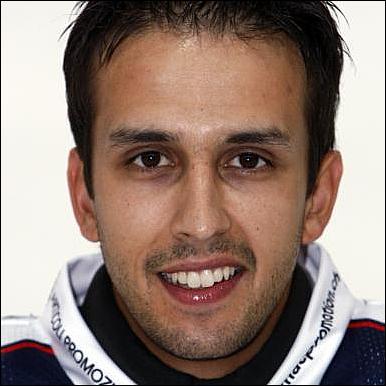 Try-out invitee Thomas Baumle from Ambri-Piotta in the Swiss league seems very comfortable and is having a hard time suppressing a big wide smile.
