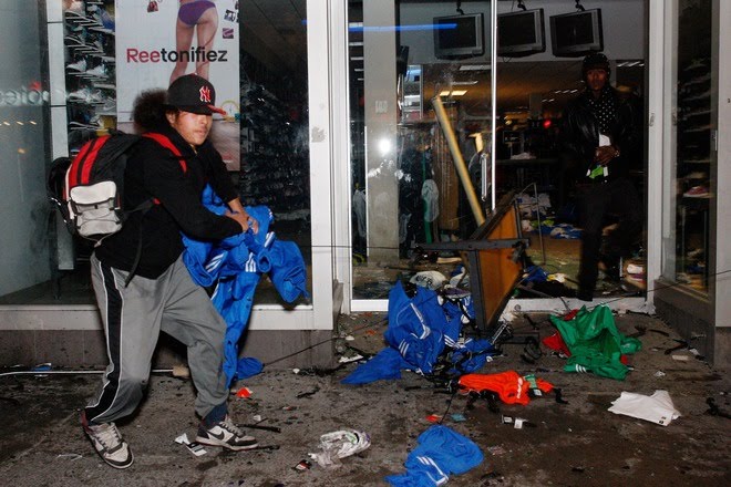 I'm sorry but this is disgusting. And I hate to be the one to say it, but notice how the majority of people stealing and breaking stuff are African American? Especially if you look at the 2nd picture. Sad, but these people give the black community a very bad name. These are the same people that complain about racial profiling in the metros. Well, these pictures aren't going to help your case….. absolutely disgusting.