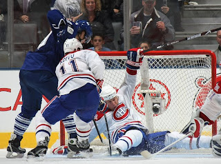 Alex Kovalev is in a funk. His skating figures are just hollow display of skill without the payoff right now. I like the play of Gorges and Bouillon most nights but it is games like this to remind us why they are the 5th and 6th defensemen on the team. With Roman Hamrlik out, Josh and Frankie played extra minutes and struggled at times. They were beat by speed and size. #71 had a Patrice Brisebois game. On the Leafs second goal, Brise looked like a pinball bouncing off a bumper leaving Kulemin to set up Grabovski.