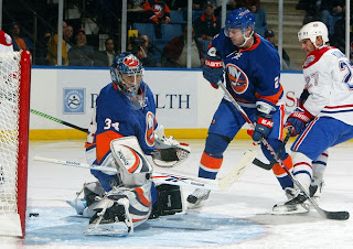 After the Lapierre/Begin combo gave the Islanders their second powerplay goal and a 3-1 lead, Georges Laraques was sent out to do his thing: decisively win a fight and change the momentum. Well, that’s strike two Georges! He failed to stand up for his teammate when AK-46 took a brutal headshot in the Phoenix game and tonight his dance with newcomer Mitchell Fritz was at best a draw; certainly not a momentum changer!