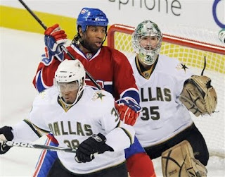 Some questioned Martin on his decision to start Price after Halak played a good game vs New Jersey, but I suppose the 4 day layoff serves as a sort of reset button. I thought that given the Stars road woes and that they aren't a very strong team to begin with, that starting Halak would have been another good opportunity to boost his value. Anyone who thought that was evidently wrong, but at the start of the game it was looking like Martin may have erred. Price was almost universally panned for the 1st goal he gave up. He played the pass, while hockey 101 says that the goalie takes the shooter on a 2-on-1. He also gave up some sloppy rebounds and made some careless passes in his own end; lack of focus or the struggles of a young goalie? You decide, but as it turns out, he got better as the game progressed, shaking off whatever rust may have built up. He was there in the 3rd when he needed to be and gets the well deserved W. He had to have it, let's face it.